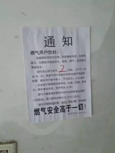 @涡阳吧友jzmq521:早起我在打游戏,听到有人敲门,我看门看到一个穿的像工作人员的一个人,说因为燃气胶管危险大统一换成不锈钢波纹管,一米要200快钱,当时我在打游戏没在意,就被骗了。